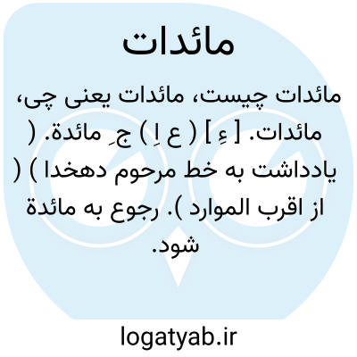 لغت نامه دهخدا مائدات. [ ءِ ] ( ع اِ ) ج ِ مائدة. ( یادداشت به خط مرحوم دهخدا ) ( از اقرب الموارد ). رجوع به مائدة شود.