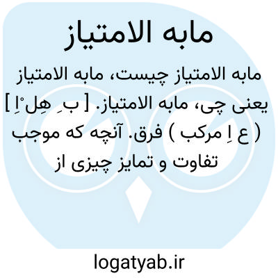 لغت نامه دهخدا مابه الامتیاز. [ ب ِ هِل ْاِ ] ( ع اِ مرکب ) فرق. آنچه که موجب تفاوت و تمایز چیزی از چیز دیگر گردد.