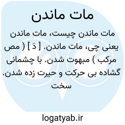 مات ماندن. [ دَ ] ( مص مرکب ) مبهوت شدن. با چشمانی گشاده بی حرکت و حیرت زده شدن. سخت متحیر شدن. ( یادداشت به خط مرحوم دهخدا ).