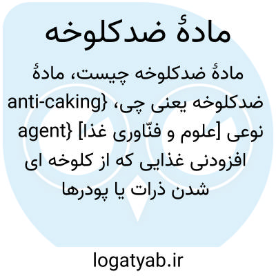 {anti-caking agent} [علوم و فنّاوری غذا] نوعی افزودنی غذایی که از کلوخه ای شدن ذرات یا پودرها جلوگیری می کند متـ. ضدکلوخه