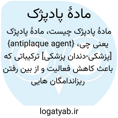 {antiplaque agent} [پزشکی-دندان پزشکی] ترکیباتی که باعث کاهش فعالیت و از بین رفتن ریزاندامگان هایی می شود که در تشکیل پُژک دندان دخالت دارند متـ. پادپُژک