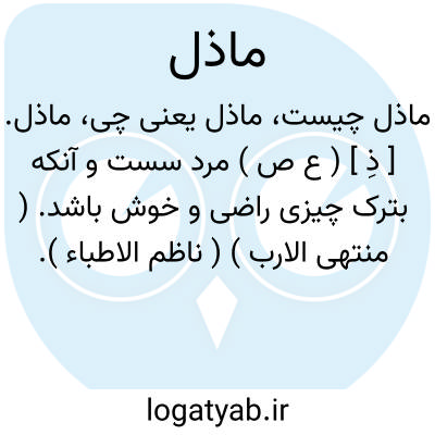 ماذل. [ ذِ ] ( ع ص ) مرد سست و آنکه بترک چیزی راضی و خوش باشد. ( منتهی الارب ) ( ناظم الاطباء ).