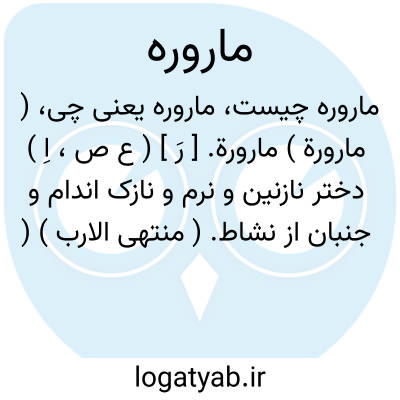 لغت نامه دهخدا ( مارورة ) مارورة. [ رَ ] ( ع ص، اِ ) دختر نازنین و نرم و نازک اندام و جنبان از نشاط. ( منتهی الارب ) ( آنندراج ) ( ناظم الاطباء ) ( از اقرب الموارد ). || تلخه ای است که در گندم باشد. ( منتهی الارب ) ( آنندراج ) ( از ناظم الاطباء ).