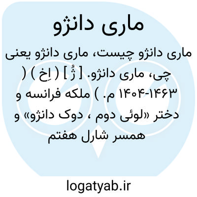 ماری دانژو. [ ژُ ] ( اِخ ) ( 1404-1463 م. ) ملکه فرانسه و دختر «لوئی دوم، دوک دانژو» و همسر شارل هفتم بود. ( از لاروس ).