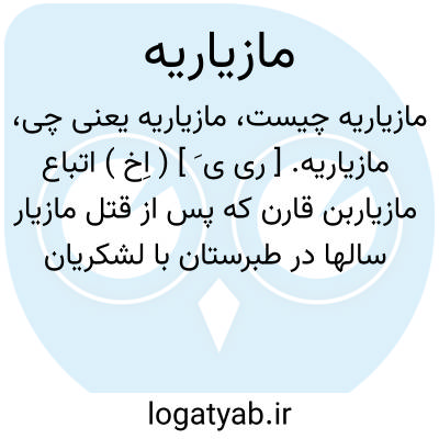 لغت نامه دهخدا مازیاریه. [ ری ی َ ] ( اِخ ) اتباع مازیاربن قارن که پس از قتل مازیار سالها در طبرستان با لشکریان عرب در مبارزه بودند و مدتها بعد از قرن سوم دوام داشتند. ( از تاریخ ادبیات ایران تألیف صفا ج 1 ص 61 ). و رجوع به ترجمه الفرق بین الفرق ص 277 شود.