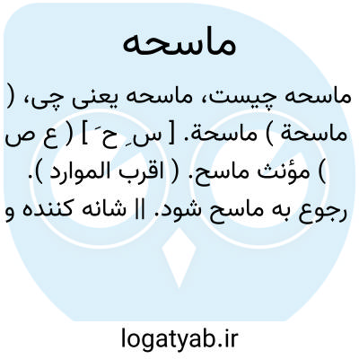 ( ماسحة ) ماسحة. [ س ِ ح َ ] ( ع ص ) مؤنث ماسح. ( اقرب الموارد ). رجوع به ماسح شود. || شانه کننده و زن مشاطه.( ناظم الاطباء ). ماشطة. ج، مواسح. ( اقرب الموارد ).