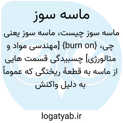 {burn on} [مهندسی مواد و متالورژی] چسبیدگی قسمت هایی از ماسه به قطعۀ ریختگی که عموماً به دلیل واکنش شیمیایی بین قالب و مذاب و در گرم ترین قسمت های قالب ایجاد می شود