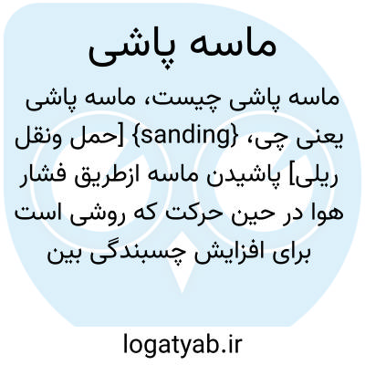 {sanding} [حمل ونقل ریلی] پاشیدن ماسه ازطریق فشار هوا در حین حرکت که روشی است برای افزایش چسبندگی بین چرخ درحال حرکت و ریل