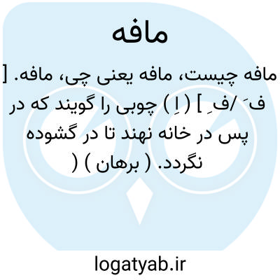 لغت نامه دهخدا مافه. [ ف َ /ف ِ ] ( اِ ) چوبی را گویند که در پس در خانه نهند تا در گشوده نگردد. ( برهان ) ( آنندراج ) ( ناظم الاطباء ).