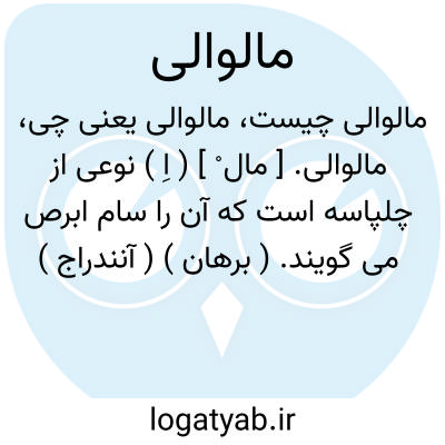 مالوالی. [ مال ْ ] ( اِ ) نوعی از چلپاسه است که آن را سام ابرص می گویند. ( برهان ) ( آنندراج ) ( از ناظم الاطباء ). «مارمولک باغی » که آن را سام ابرص نیز گویند. ( فرهنگ فارسی معین ).
