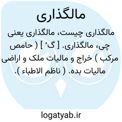 مالگذاری. [ گ ُ ] ( حامص مرکب ) خراج و مالیات ملک و اراضی مالیات بده. ( ناظم الاطباء ).