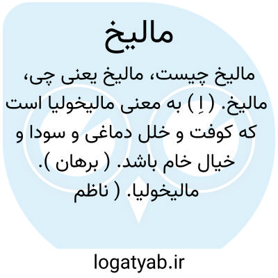مالیخ. ( اِ ) به معنی مالیخولیا است که کوفت و خلل دماغی و سودا و خیال خام باشد. ( برهان ). مالیخولیا. ( ناظم الاطباء ). مخفف مالیخولیا. ( یادداشت به خط مرحوم دهخدا ):