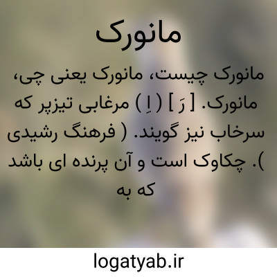 مانورک. [ رَ ] ( اِ ) مرغابی تیزپر که سرخاب نیز گویند. ( فرهنگ رشیدی ). چکاوک است و آن پرنده ای باشد که به عربی ابوالملیح خوانندش.بعضی گویند پرنده ای است آبی که آن را سرخاب می گویند. ( برهان ). مرغابیی است تیزپر که آن را سرخاب گویند.( آنندراج ) ( انجمن آرا ). چکاوک بود. ( فرهنگ جهانگیری ). در جهانگیری چکاوک گفته. ( فرهنگ رشیدی ) ( آنندراج ). چکاوک و مانوک و ابوالملیح و نام پرنده ای آبی که سرخاب نیز گویند. ( ناظم الاطباء ). || نام دارویی هم هست. ( برهان ). نام دارویی. ( ناظم الاطباء ).