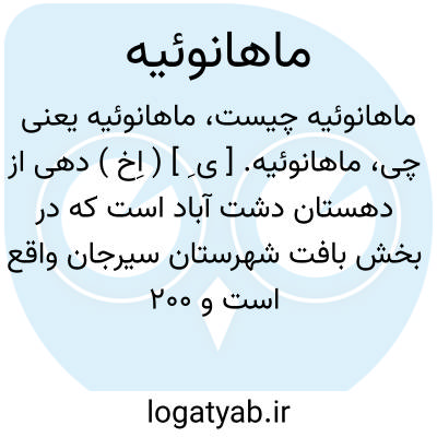 ماهانوئیه. [ ی ِ ] ( اِخ ) دهی از دهستان دشت آباد است که در بخش بافت شهرستان سیرجان واقع است و 200 تن سکنه دارد. ( از فرهنگ جغرافیایی ایران ج 8 ).