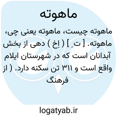 ماهوته. [ ت ِ ] ( اِخ ) دهی از بخش آبدانان است که در شهرستان ایلام واقع است و 311 تن سکنه دارد. ( از فرهنگ جغرافیایی ایران ج 5 ).