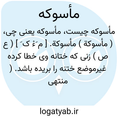 ( مأسوکة ) مأسوکة. [ م َءْ ک َ ] ( ع ص ) زنی که ختانه وی خطا کرده غیرموضع ختنه را بریده باشد. ( منتهی الارب ) ( آنندراج ). زنی که در ختنه وی خطا کرده و غیر موضع ختنه را بریده باشند. ( ناظم الاطباء ).