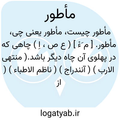 مأطور. [ م َءْ ] ( ع ص، اِ ) چاهی که در پهلوی آن چاه دیگر باشد.( منتهی الارب ) ( آنندراج ) ( ناظم الاطباء ) ( از اقرب الموارد ). || آبی که در رفتن نرم باشد و گرداگرد آن از چوب محکم کنند تا خراب نگردد. ( منتهی الارب ) ( آنندراج ) ( ناظم الاطباء ) ( از ذیل اقرب الموارد ).