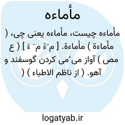 ( مأماءة ) مأماءة. [ م َءْ م َ ءَ ] ( ع مص ) آواز می ٔمی کردن گوسفند و آهو. ( از ناظم الاطباء ) ( از اقرب الموارد ).