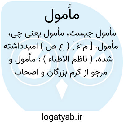 مأمول. [ م َءْ ] ( ع ص ) امیدداشته شده. ( ناظم الاطباء ): مأمول و مرجو از کرم بزرگان و اصحاب فضل و کمال... ( تاریخ قم ص 3 ). || متوقع و امیدوار و آرزومند و منتظر. || ( اِ ) امید و انتظار. ( ناظم الاطباء ). || آرزو. آرمان: و باز این قسم دو نوعند، یکی نوع آنند که به استاد و تلقف و تکلف و خواندن و نبشتن به کنه این مأمول رسند. ( چهارمقاله ص 17 ). شب دراز دو چشمم بر آستان امید که بامداد در حجره می زند مأمول.سعدی.