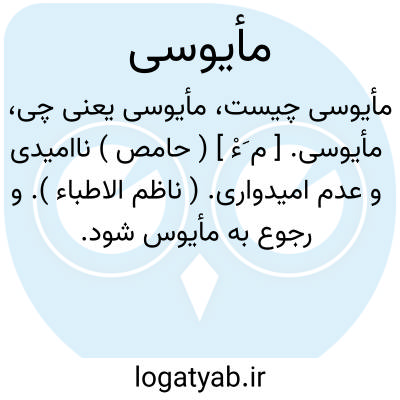 مأیوسی. [ م َءْ ] ( حامص ) ناامیدی و عدم امیدواری. ( ناظم الاطباء ). و رجوع به مأیوس شود.