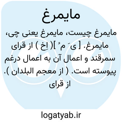 مایمرغ. [ ی َ م ُ ]( اِخ ) از قرای سمرقند و اعمال آن به اعمال درغم پیوسته است. ( از معجم البلدان ). از قرای سمرقند. ( از انساب سمعانی ). و رجوع به دو ماده بعد و «مای » شود.