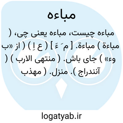 ( مباءة ) مباءة. [ م َ ءَ ] ( ع اِ ) ( از «ب وء» ) جای باش. ( منتهی الارب ) ( آنندراج ). منزل. ( مهذب الاسماء ) ( اقرب الموارد ). آرامش جا. ( یادداشت به خط مرحوم دهخدا ). خانه و منزل باش. ( ناظم الاطباء ). || خانه زنبور عسل در کوه. ( منتهی الارب ) ( آنندراج )( ناظم الاطباء ). خانه زنبور عسل. ( از اقرب الموارد ). || جای بچه در رحم. ( منتهی الارب ) ( آنندراج ) ( ناظم الاطباء ). || جای باش گاو و شتر. ( منتهی الارب ) ( آنندراج ). آنجا که اشتر شب گذارد. ( مهذب الاسماء ). شترخان. گاودانی. ( یادداشت به خط مرحوم دهخدا ). جای باش گاو. ( ناظم الاطباء ). || خوابگاه شتران. ( ناظم الاطباء ) ( از اقرب الموارد ). || خوابجای گاو وحشی. ( از اقرب الموارد ). || جای آمد و شد گاوان وحشی. ( ناظم الاطباء ).