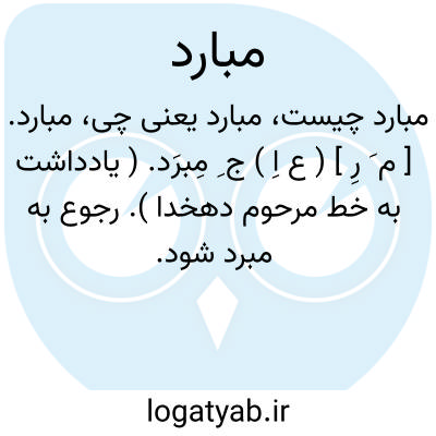 لغت نامه دهخدا مبارد. [ م َ رِ ] ( ع اِ ) ج ِ مِبرَد. ( یادداشت به خط مرحوم دهخدا ). رجوع به مبرد شود.
