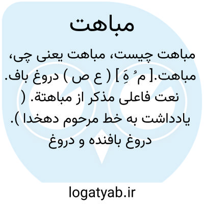 مباهت.[ م ُ هَِ ] ( ع ص ) دروغ باف. نعت فاعلی مذکر از مباهتة. ( یادداشت به خط مرحوم دهخدا ). دروغ بافنده و دروغ سازنده. ( ناظم الاطباء ). و رجوع به ماده بعد شود.