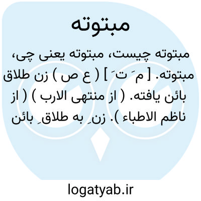 مبتوته. [ م َ ت َ ] ( ع ص ) زن طلاق بائن یافته. ( از منتهی الارب ) ( از ناظم الاطباء ). زن ِ به طلاق ِ بائن کرده. زنی که او را طلاق داده اند.و رجوع به طلاق شود. ( یادداشت به خط مرحوم دهخدا ).