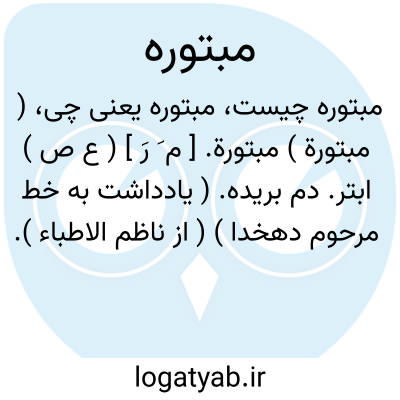 لغت نامه دهخدا ( مبتورة ) مبتورة. [ م َ رَ ] ( ع ص ) ابتر. دم بریده. ( یادداشت به خط مرحوم دهخدا ) ( از ناظم الاطباء ).