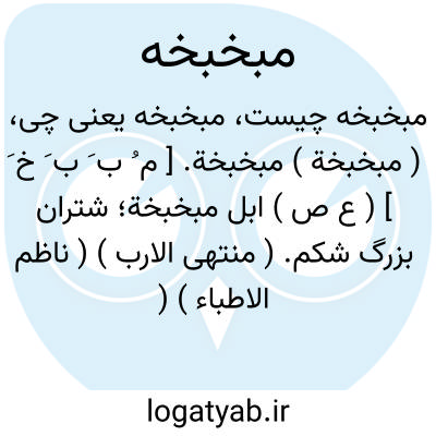 ( مبخبخة ) مبخبخة. [ م ُ ب َ ب َ خ َ ] ( ع ص ) ابل مبخبخة؛ شتران بزرگ شکم. ( منتهی الارب ) ( ناظم الاطباء ) ( از ذیل اقرب الموارد ). شتر بزرگ شکم. ( آنندراج ).