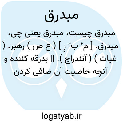 مبدرق. [ م ُ ب َ رِ ] ( ع ص ) رهبر. ( غیاث ) ( آنندراج ). || بدرقه کننده و آنچه خاصیت آن صافی کردن اجزاء و مخلوط کننده و رساننده آن به اعضاء است چنانکه شراب با غذا کند. ( از بحرالجواهر ): اما آنچه دارو را زود به جایگاه رساند چون تخم کرفس است و پوست سلیخه و انیسون و این را طبیبان به تازی مبدرق گویند یعنی بدرقه کننده. ( ذخیره خوارزمشاهی ).