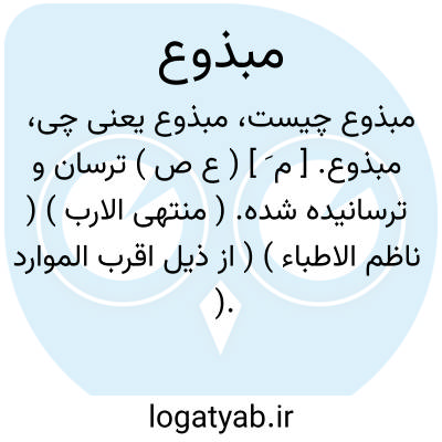 لغت نامه دهخدا مبذوع. [ م َ ] ( ع ص ) ترسان و ترسانیده شده. ( منتهی الارب ) ( ناظم الاطباء ) ( از ذیل اقرب الموارد ).