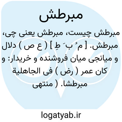 مبرطش. [ م ُ ب َ طِ ] ( ع ص ) دلال و میانجی میان فروشنده و خریدار: و کان عمر ( رض ) فی الجاهلیة مبرطشا. ( منتهی الارب ) ( آنندراج ) ( ناظم الاطباء ).