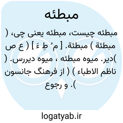 ( مبطئة ) مبطئة. [ م ُ طِ ءَ ] ( ع ص )دیر. میوه مبطئه، میوه دیررس. ( ناظم الاطباء ) ( از فرهنگ جانسون ). و رجوع به مُبطی و ماده قبل شود.