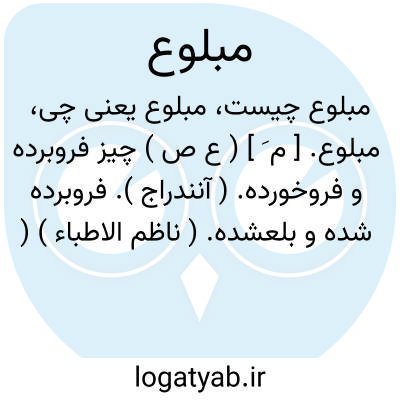 لغت نامه دهخدا مبلوع. [ م َ ] ( ع ص ) چیز فروبرده و فروخورده. ( آنندراج ). فروبرده شده و بلعشده. ( ناظم الاطباء ) ( از فرهنگ جانسون ). بلعشده. ( یادداشت به خط مرحوم دهخدا ). || عنبر مبلوع؛ قسمی عنبر پست. عنبر ردی. نوعی ردی از عنبر. ( یادداشت به خط مرحوم دهخدا ).
