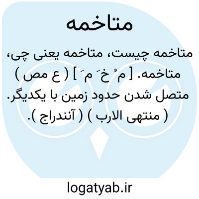 متاخمه. [ م ُ خ َ م َ ] ( ع مص ) متصل شدن حدود زمین با یکدیگر. ( منتهی الارب ) ( آنندراج ). ارضنا تتاخم ارضکم متاخمة؛ حد زمین ما متصل است به زمین شما. ( از ناظم الاطباء ). بلاد عمان تتاخم بلاد الشجر و بلادنا متاخمة لبلادهم. ( اقرب الموارد ). و رجوع به متاخم شود.
