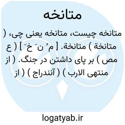 ( متانخة ) متانخة. [ م ُ ن َ خ َ ] ( ع مص ) بر پای داشتن در جنگ. ( از منتهی الارب ) ( آنندراج ) ( از ذیل اقرب الموارد ). تانخه فی الحرب متانخة؛ بر پای داشت او را در جنگ. ( منتهی الارب ) ( ناظم الاطباء ).