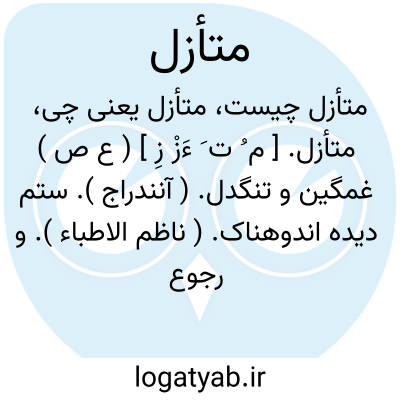 متأزل. [ م ُ ت َ ءَزْ زِ ] ( ع ص ) غمگین و تنگدل. ( آنندراج ). ستم دیده اندوهناک. ( ناظم الاطباء ). و رجوع به تأزل شود.