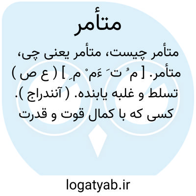 متأمر. [ م ُ ت َ ءَم ْ م ِ ] ( ع ص ) تسلط و غلبه یابنده. ( آنندراج ). کسی که با کمال قوت و قدرت حکمرانی می کند. ( ناظم الاطباء ). || سرافراز شده از حکومت وفرمانروائی. ( ناظم الاطباء ). و رجوع به تأمر شود.