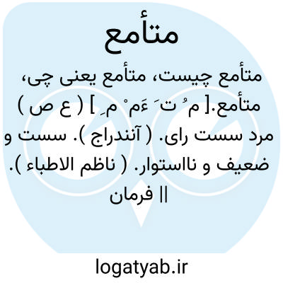 متأمع.[ م ُ ت َ ءَم ْ م ِ ] ( ع ص ) مرد سست رای. ( آنندراج ). سست و ضعیف و نااستوار. ( ناظم الاطباء ). || فرمان بردار هر کس. ( آنندراج ). و رجوع به تأمع شود.