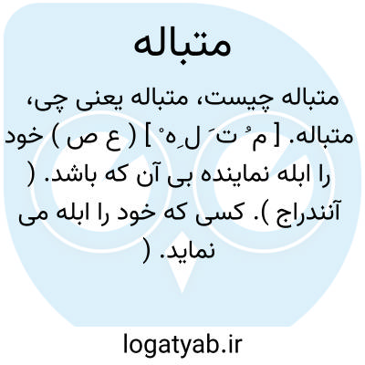 متباله. [ م ُ ت َ ل ِه ْ ] ( ع ص ) خود را ابله نماینده بی آن که باشد. ( آنندراج ). کسی که خود را ابله می نماید. ( ناظم الاطباء ). و رجوع به تباله شود.