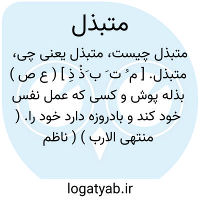 متبذل. [ م ُ ت َ ب َذْ ذِ ] ( ع ص ) بذله پوش و کسی که عمل نفس خود کند و بادروزه دارد خود را. ( منتهی الارب ) ( ناظم الاطباء ). و رجوع به مبتذل [ م ُ ت َ ذِ ] و تبذل شود.