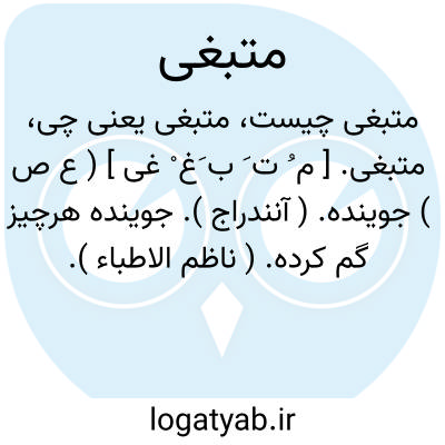 لغت نامه دهخدا متبغی. [ م ُ ت َ ب َغ ْ غی ] ( ع ص ) جوینده. ( آنندراج ). جوینده هرچیز گم کرده. ( ناظم الاطباء ). و رجوع به تبغی شود.