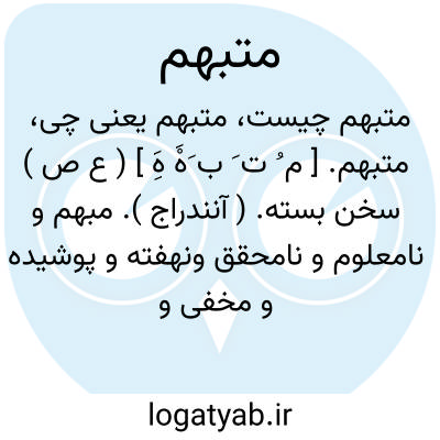 متبهم. [ م ُ ت َ ب َهَْ هَِ ] ( ع ص ) سخن بسته. ( آنندراج ). مبهم و نامعلوم و نامحقق ونهفته و پوشیده و مخفی و غیرقابل فهم. ( ناظم الاطباء ) ( از فرهنگ جانسون ). و رجوع به تبهم شود. || غیرمعروف. ( ناظم الاطباء ). و رجوع به تبهم شود.
