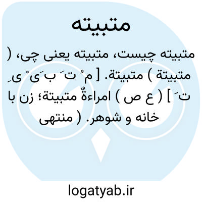 ( متبیتة ) متبیتة. [ م ُ ت َ ب َی ْ ی ِ ت َ ] ( ع ص ) امراءةٌ متبیتة؛ زن با خانه و شوهر. ( منتهی الارب ) ( ناظم الاطباء ).