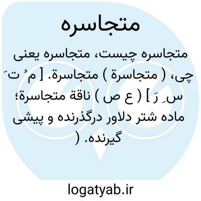 ( متجاسرة ) متجاسرة. [ م ُ ت َ س ِ رَ ] ( ع ص ) ناقة متجاسرة؛ ماده شتر دلاور درگذرنده و پیشی گیرنده. ( منتهی الارب ) ( ناظم الاطباء ). و رجوع به متجاسر و تجاسر شود.