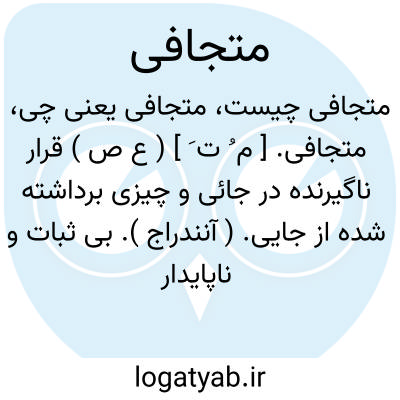 متجافی. [ م ُ ت َ ] ( ع ص ) قرار ناگیرنده در جائی و چیزی برداشته شده از جایی. ( آنندراج ). بی ثبات و ناپایدار و جدا و متفرق و دور و منتقل از جای خود و برداشته شده از جای خود و مایل از پهلوی کسی. ( ناظم الاطباء ). || غافل و بی پروا. ( ناظم الاطباء ) ( از فرهنگ جانسون ). و رجوع به تجافی شود.