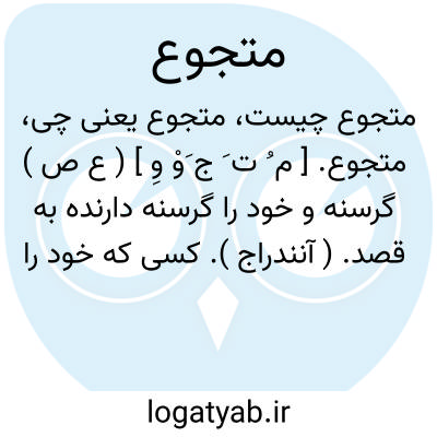 لغت نامه دهخدا متجوع. [ م ُ ت َ ج َوْ وِ ] ( ع ص ) گرسنه و خود را گرسنه دارنده به قصد. ( آنندراج ). کسی که خود را عمداً گرسنه می دارد. ( ناظم الاطباء ). و رجوع به تجوع شود.