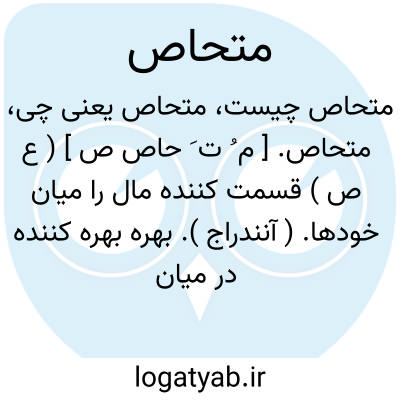 متحاص. [ م ُ ت َ حاص ص ] ( ع ص ) قسمت کننده مال را میان خودها. ( آنندراج ). بهره بهره کننده در میان خود. ( ناظم الاطباء ). و رجوع به تحاص شود.